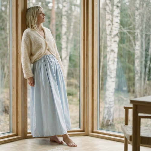 Je crée des pièces uniques (kimonos, vestes, robes ...) à partir de très belles matières (principalement des saris indiens en soie). Parfois, j'invite des marques coup de coeur pour compléter mon univers. C'est le cas pour la capsule SAKURA.